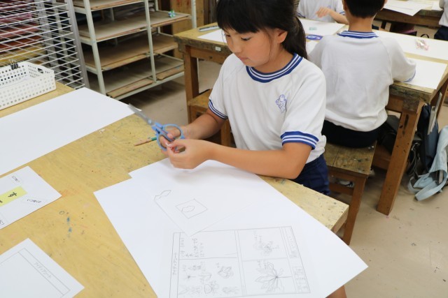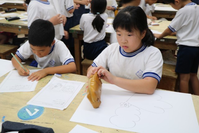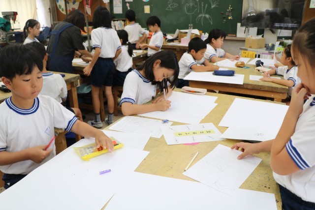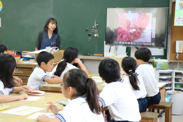 今日から専科の学習も始まりました。写真は3年生図工の様子です。世界に一つだけの自分が想像した花を描いていくようです。どんな作品になるか楽しみです。