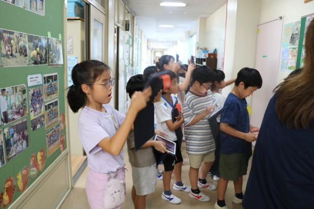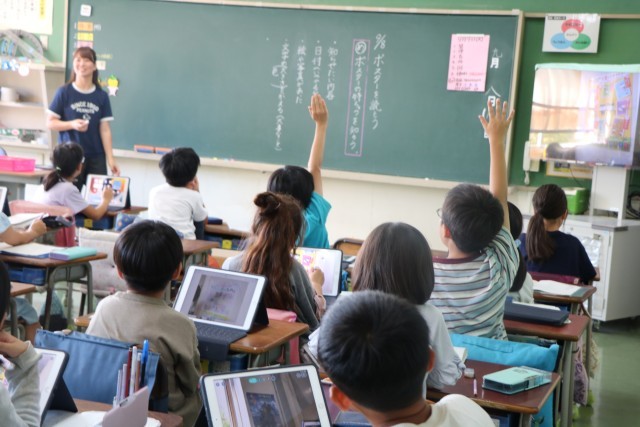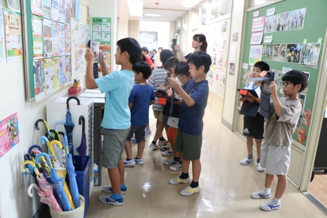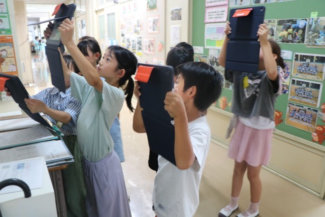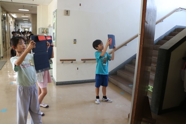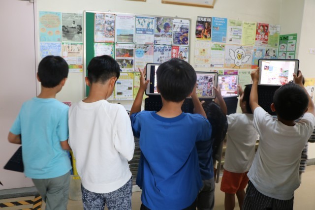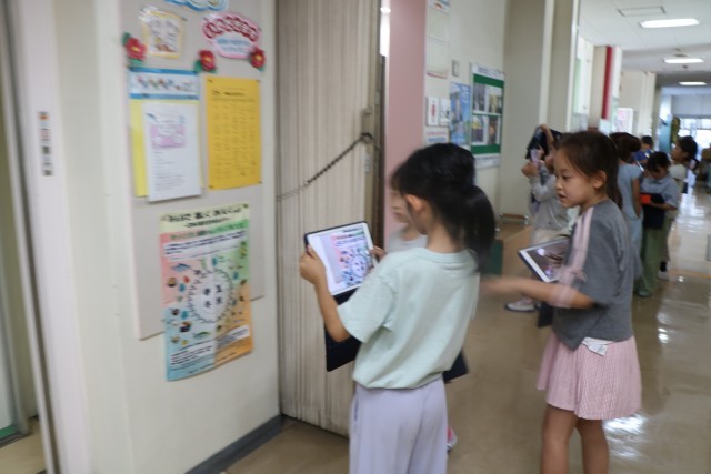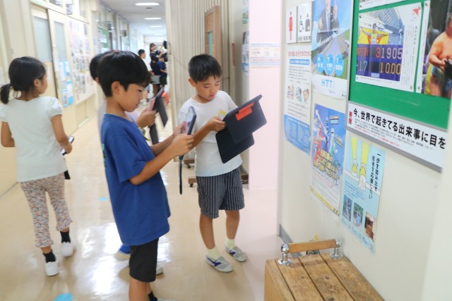 3年生国語「ポスターを読もう」の学習の様子です。学校内に貼ってある様々なポスターを見て、写真に撮って、ポスターの工夫について考えます。日ごろ何気なく見ているポスターも、これからは少し見方が変わってくるかもしれません。ポスターっていろいろな工夫がされていることに気づく子どもたちです。
