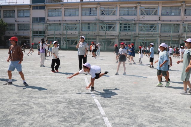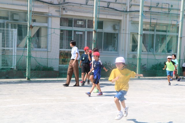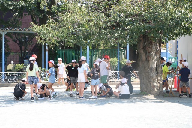 月曜日の昼休みは高学年のロング昼休みです。今日も暑かったので、日陰で遊んだり、休憩をとりながらドッチボールをしたり、長時間走らないようにルールを工夫した鬼ごっこやしっぽとりで遊んだり、昼休みをクラス一緒に楽しんでいました。そして子どもたちにはごめんなさいですが、少し早めに終わりの音楽を流して、十分涼しい教室でゆっくり水分補給をしたり汗を拭いたりして、5時間目に臨みます。