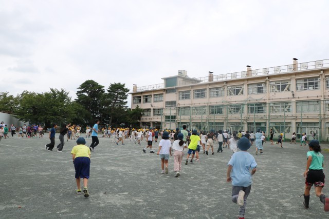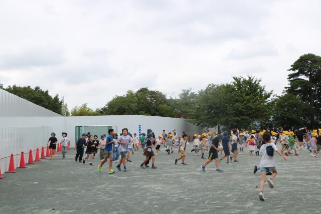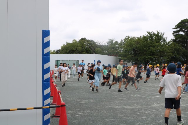 ランランランも、先生たちの工夫により全校で安全に走ることができています。改築準備工事も、白いパネルの向こうで、着々と進んでいます。