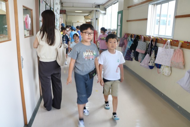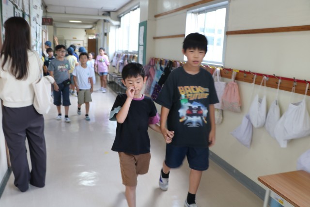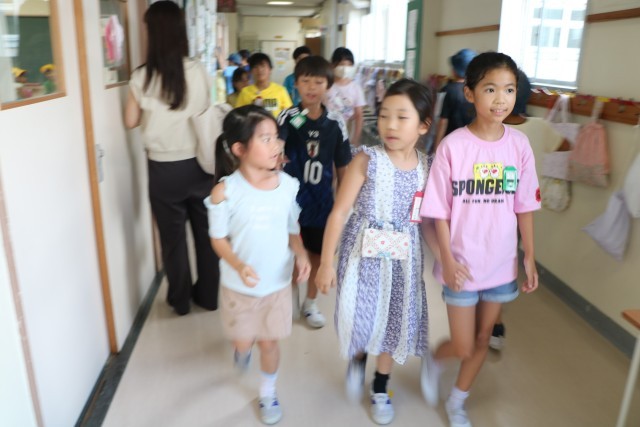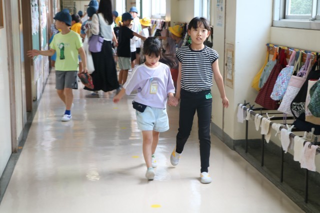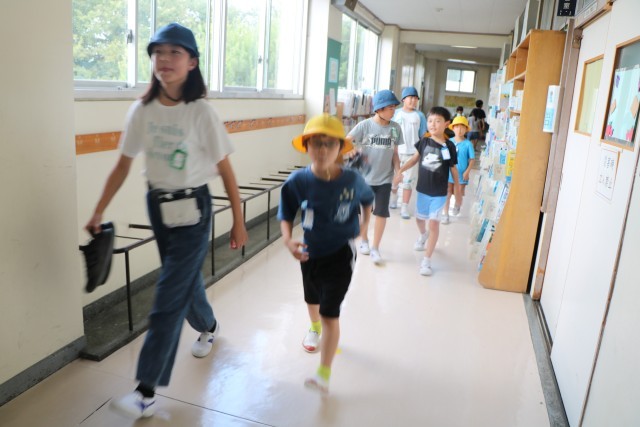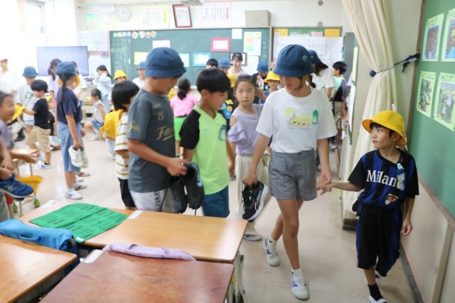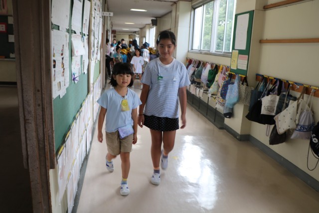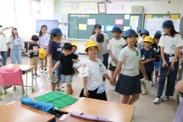 今日は2学期初めてのなかよし班遊びです。4年生が1年生をお迎えに行ってからスタートです。