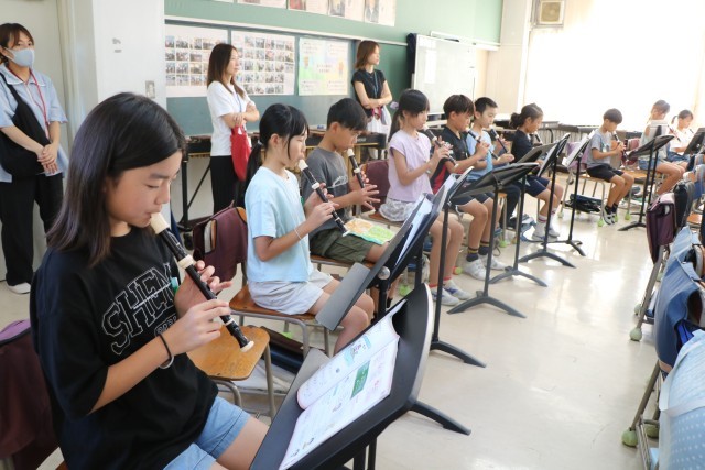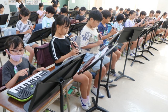4年生音楽の様子です。「陽気な船長」という曲のリコーダーを聞かせてもらいました。まだ練習2回目だというのに、とってもきれいな音色です。