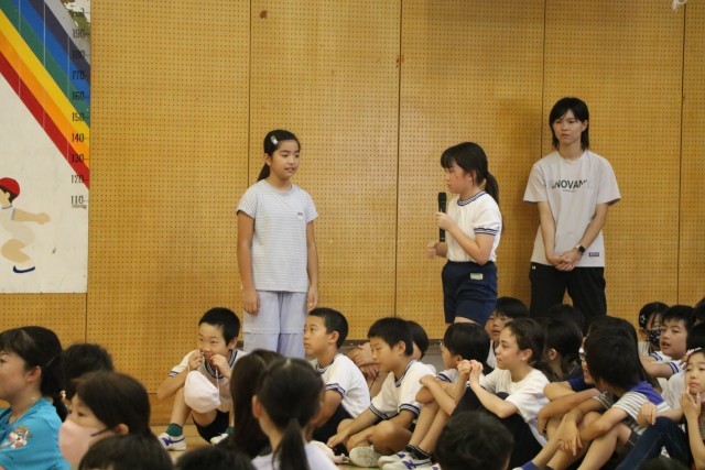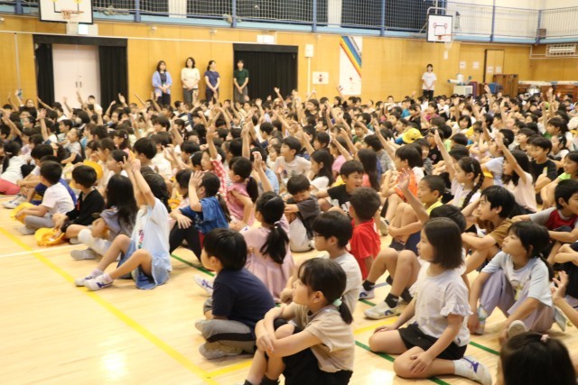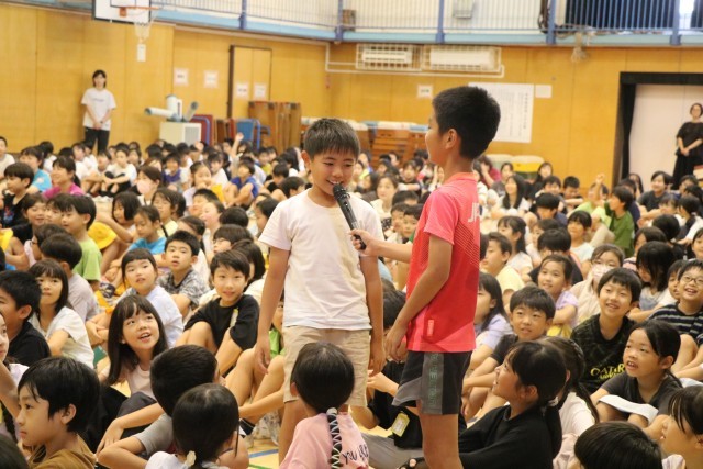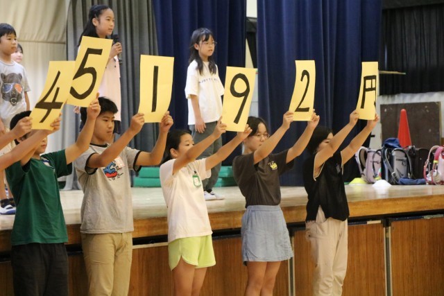 クイズの後は、先日のユニセフ募金の集計結果発表でした。募金活動を計画・実行し、最後集計して全校にお知らせをするまで、代表委員会の子どもたちが責任をもって活動していました。
