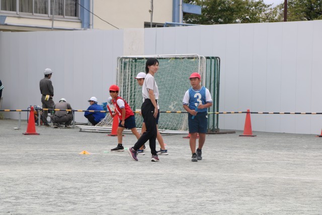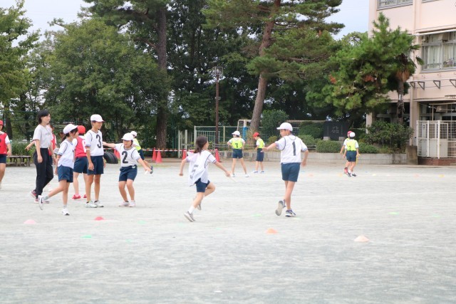5年生体育の様子です。5年生は2学期から一部教科担任制を実施しています。学級担任だけでなく教科担任を加えた複数の視点で子どもを理解することや信頼関係を深めることで子どもの心も安定します。また熟練した指導を行えることでより分かりやすく、質の高い授業によって学力向上につながると考えます。