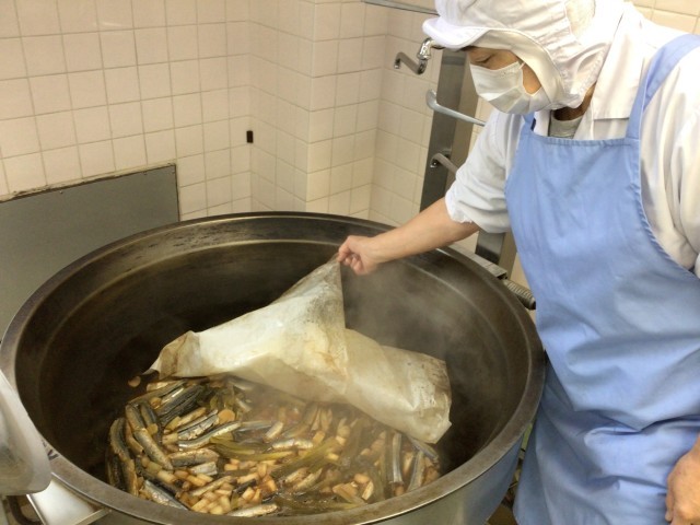 さんまは給食室の釜で2時間以上かけて、骨まで柔らかく煮ました。