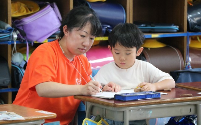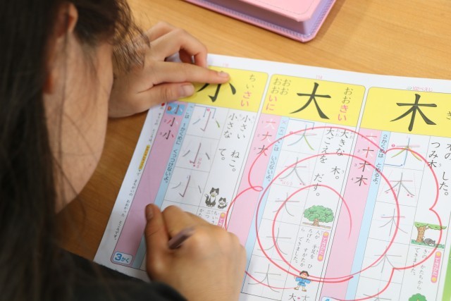 一生懸命先生に教わる横顔、漢字を練習する横顔がとってもかわいいです。