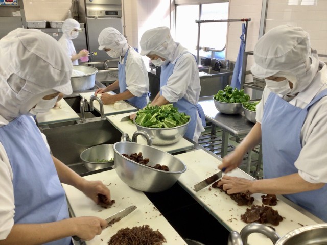 給食で使うチンジャオロースのピーマンは全部で400個近くになります。それを調理員さんたちは全て包丁で千切りにしてくださいました。