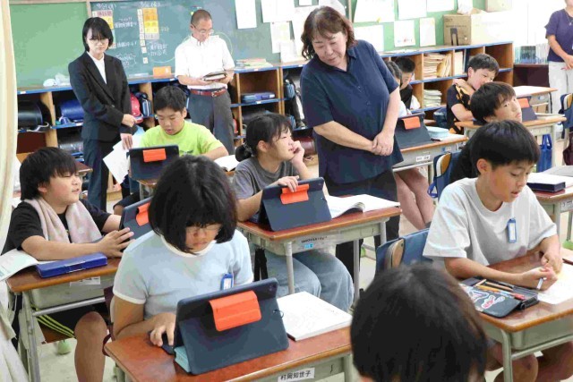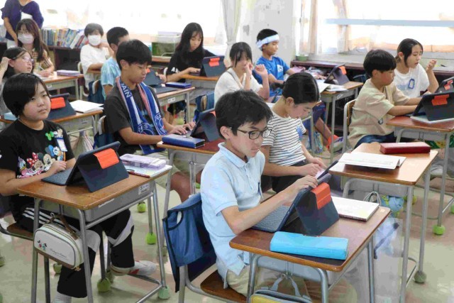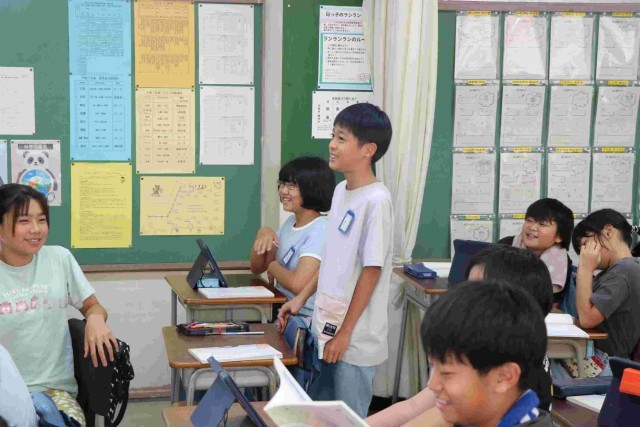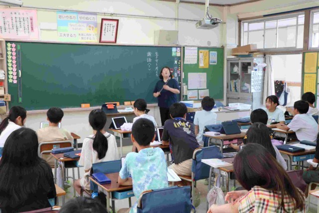 5年生の日本語の様子です。今日は大学の先生や学生が参観に来ました。論語をもとに生き方を考えるという難しい授業ですが、先生の工夫と準備で楽しく学習していました。