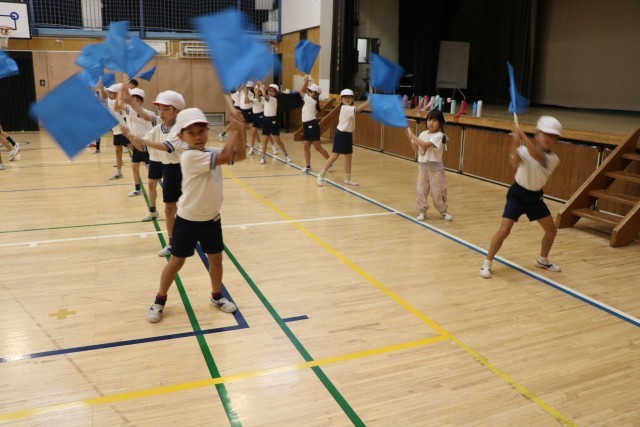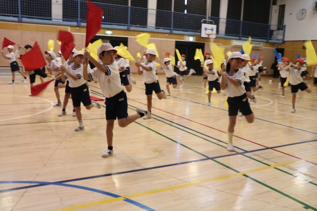 2年生学年体育の様子です。今年の運動会では、どんな表現運動を見せてくれるでしょうか。かわいい中にも、さすが2年生!一つひとつの動作がキリッと引き締まってかっこいいです。