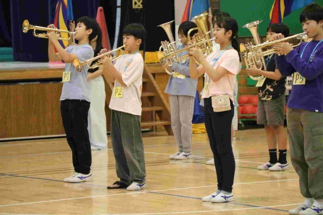 月曜日の授業では楽器をもたずにフォーメーションのみを練習しましたが、今日の4時間目はそれに演奏をつけました。さらに楽器をもった時の姿勢などにも気を付け始め、かっこよくなってきています。運動会が楽しみです。