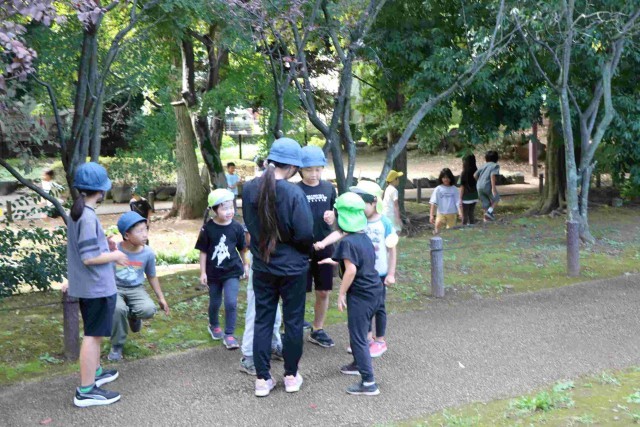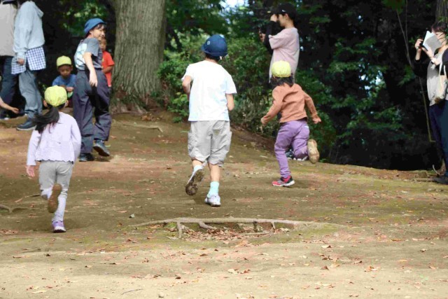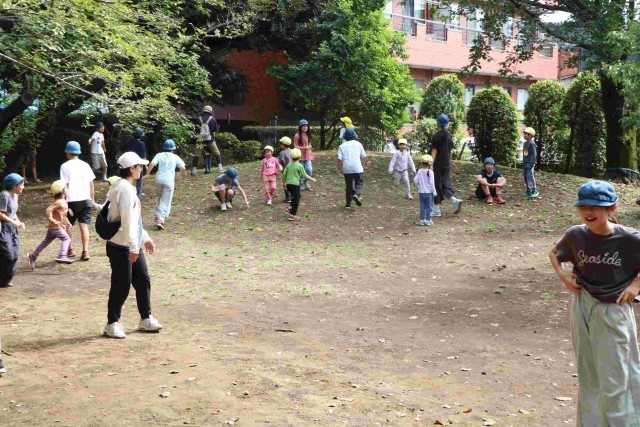 鬼ごっこ、だるまさんがころんだ、秋探し、いろいろな遊びで楽しませてあげることができました。