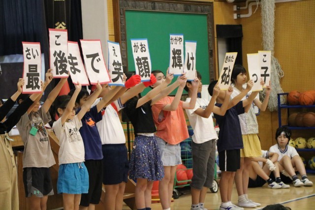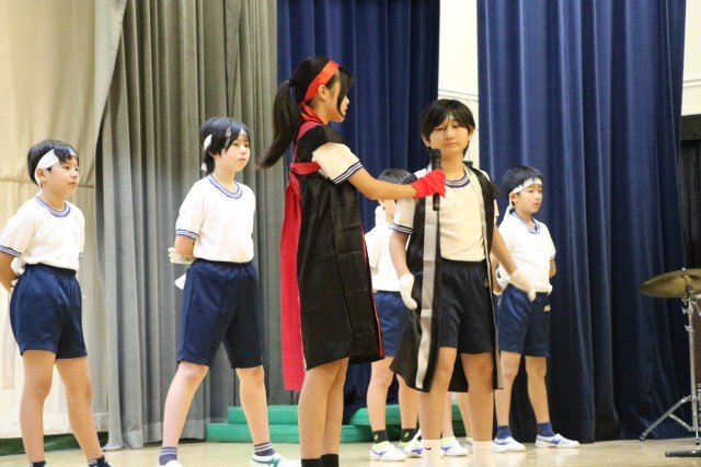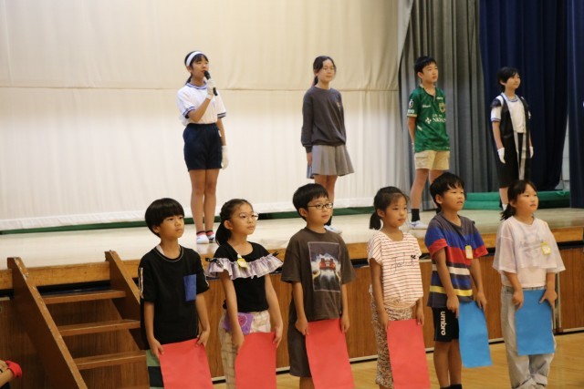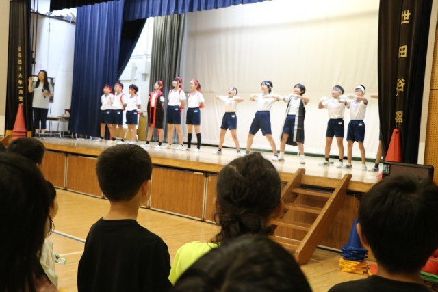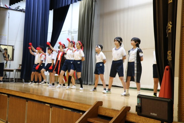 金曜日の朝は集会・朝会があります。今日は音楽朝会がありました。まず初めに代表委員が運動会のスローガンを発表しました。各クラスの意見を一つにした砧っ子の優しさとやる気いっぱいな気持ちが伝わるスローガンです。