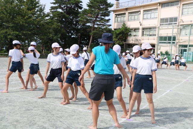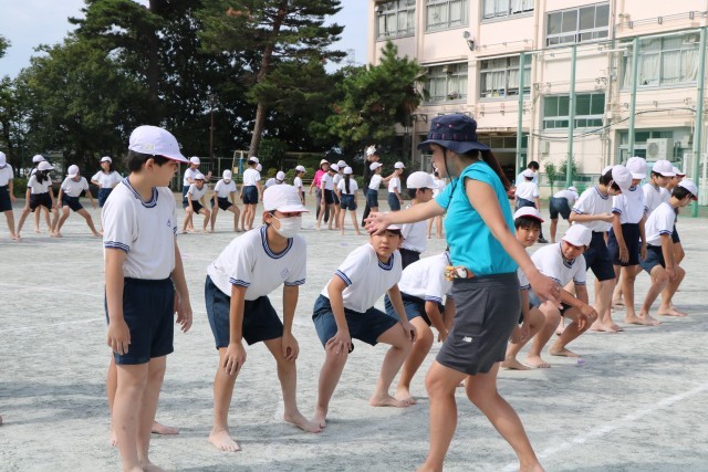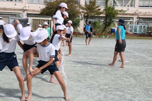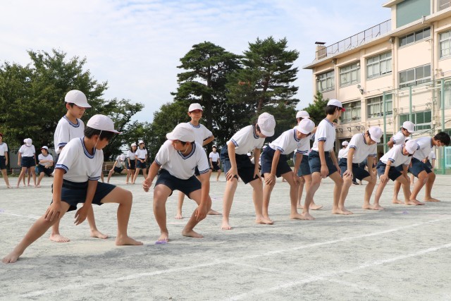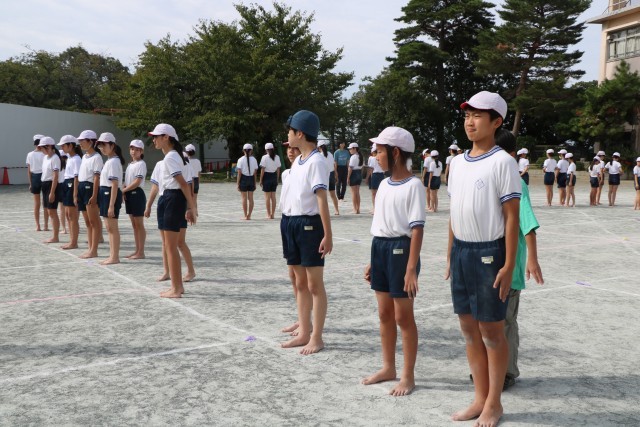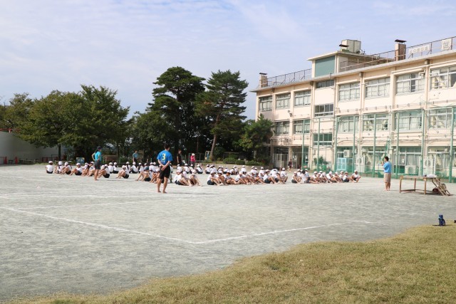 6年生学年体育の様子です。初めて校庭に出ての練習です。学年の先生だけでなく、空き時間の先生方も一緒に補助をしてくれたりアドバイスをしてくれたり、6年生を応援してくれます。安全に気を付けて、真剣に取り組んでいます。
