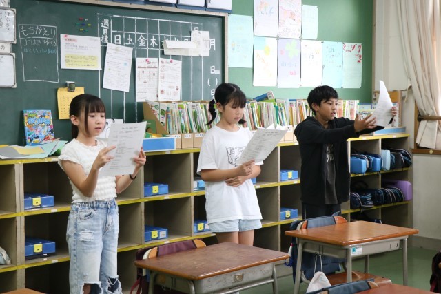 進行係は開閉会式の司会をします。緊張しますが元気よくアナウンスする練習です。