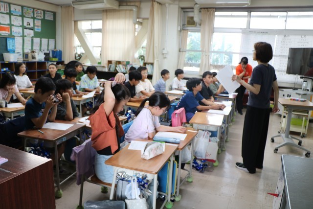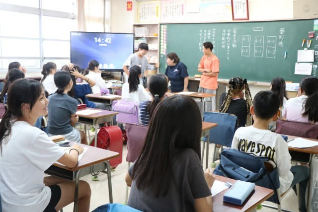 審判係は徒競走の審判を先生たちと正確に、スムーズにするために、手順を聞いて覚えます。