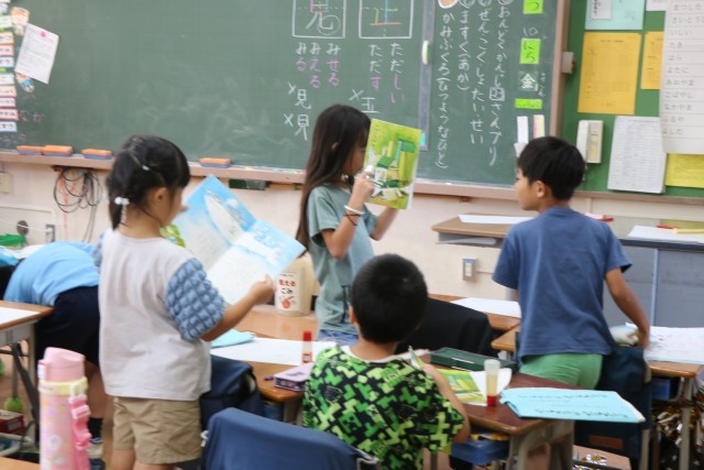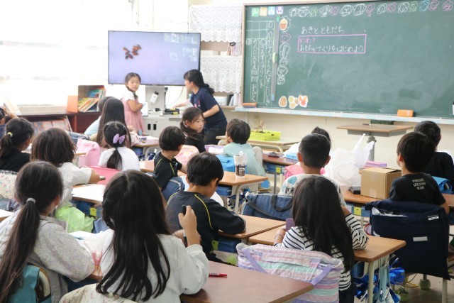 1年生の様子です。生活科では、自分たちで見つけてきた秋のものをみんなに紹介しながら、、おもちゃ作りをしようと計画を立てています。また国語では「くじらぐも」の学習をしています。家で音読を毎日聞いていただきありがとうございます。読むのがとっても上手になってきました。隣同士、グループで、今日の学習する場面を音読し合っています。テスト直しもしっかりし、終わったらタブレットで漢字の学習を進めています。