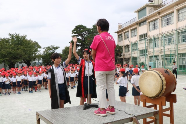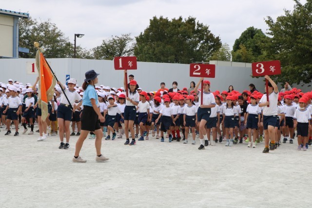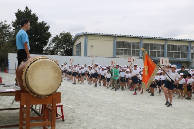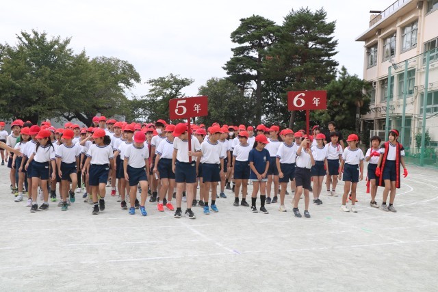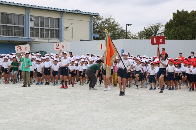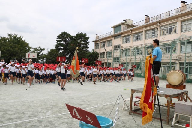 今日は全校練習の1回目です。開会式前の入場、開会式、応援合戦の練習をしました。何事も初めての1年生も、先生の話をしっかり聞いて頑張りました。行進の様子も立派です。