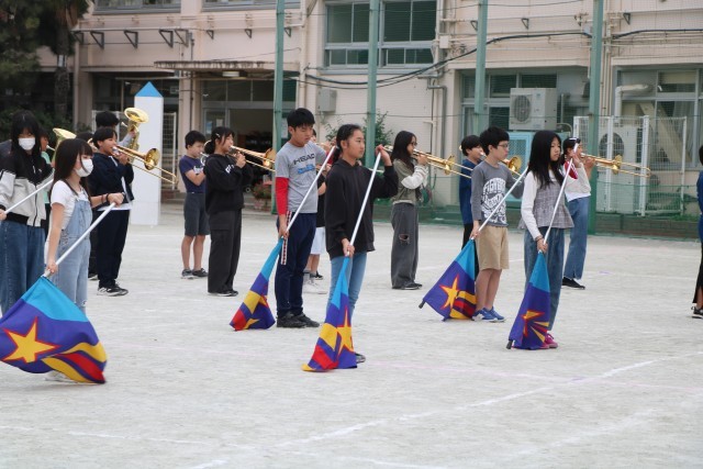 6年生鼓笛練習の様子です。学年での練習もリハーサルを入れて、いよいよ残り2回です。最後の細かな調整を頑張っています。