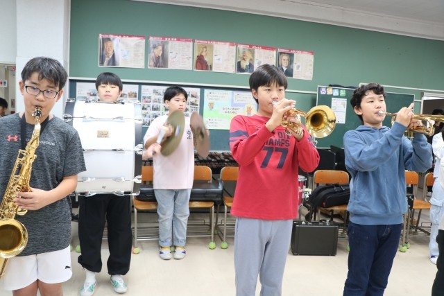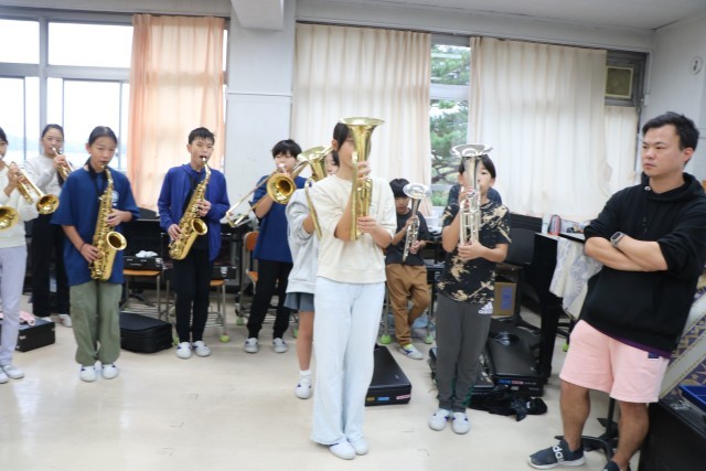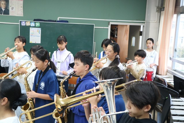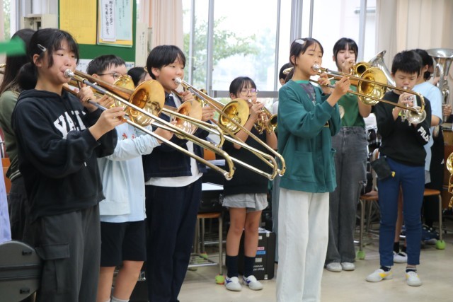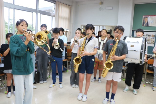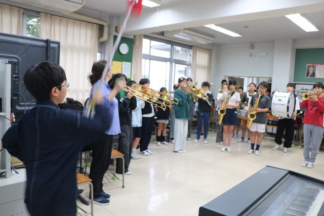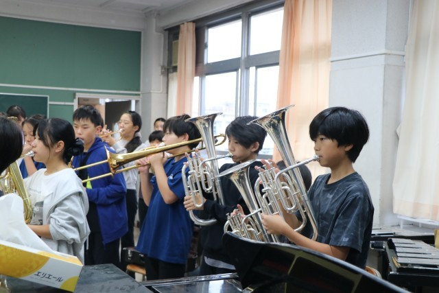 音楽室では全員が集まって最後の練習です。音をはっきり出す、特に出だしの音を大切に自信をもって出す・・・など今まで練習してきたことを一つ一つ確認しながら練習をしています。