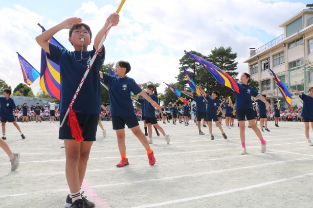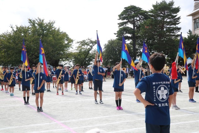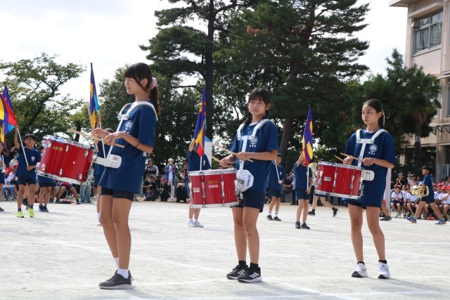 運動会最後の演技は、砧小のリーダー6年生による鼓笛隊の演技です。今日のために5年生の時から練習を積み重ねてきました。今年は、砧小で代々受け継がれてきた、キングスコートを校歌に加え、「最高到達点」を演奏します。鼓笛隊の演技で皆さんに元気と勇気を届けます。心を一つに、第60代鼓笛隊として、最高到達点をめざします。