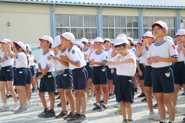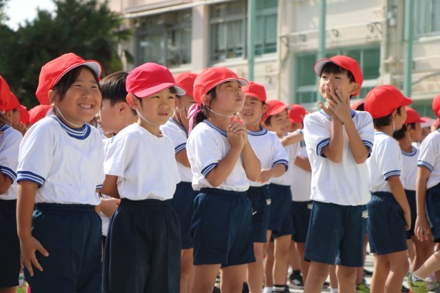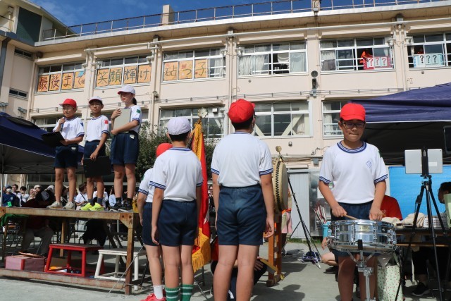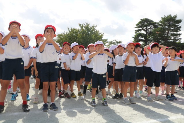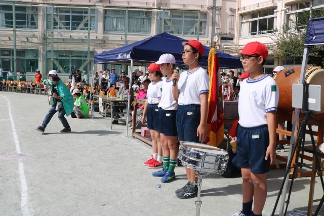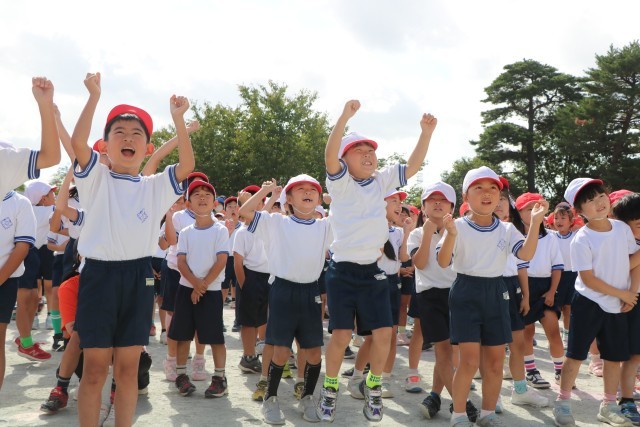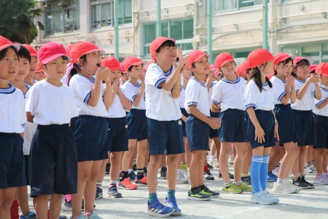 閉会式、成績発表の様子です。位ごとに赤白発表があるので、子どもたちは祈るような思いで得点版を見上げています。
