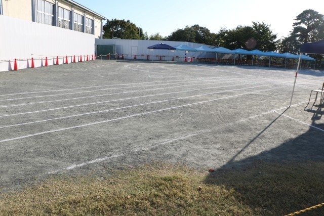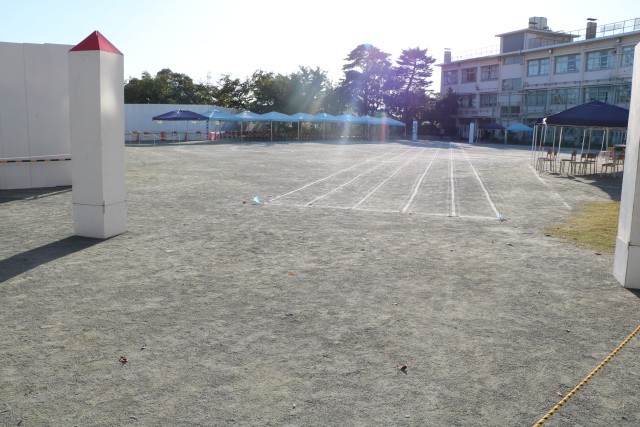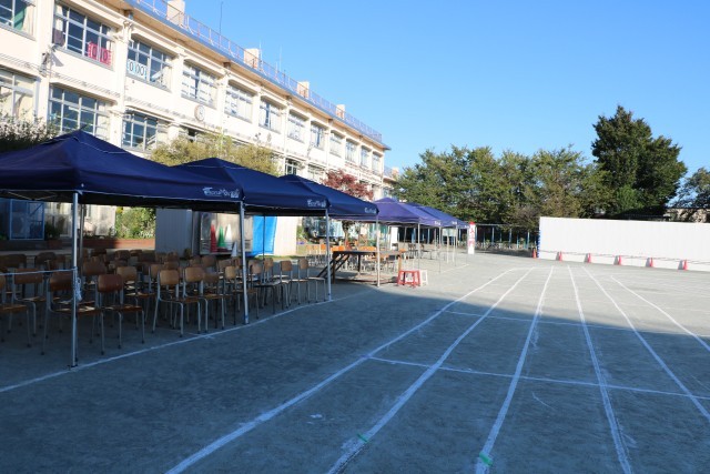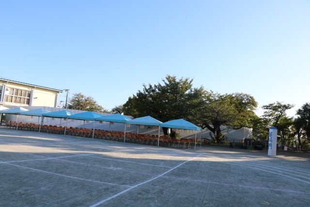 明日は今日と同じくらいの気候になる予報です。寒さ対策より暑さ対策が必要になってくることを予想してテントも張りました。校庭が小さくなり少々観覧しにくいかもしれませんが、どうぞ譲り合って、子どもたちの活躍をご覧いただきたいと思います。