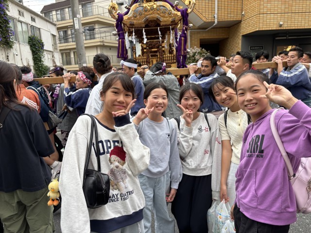 今日は氷川神社のお祭りです。砧小学校交差点から子どもたちが引く山車と、お囃子、太鼓、神輿が入ってきます。休憩の時には、子どもたちにお菓子が振舞われます。たくさんの子どもたちの笑顔がありました。砧っ子にもたくさん会えました。お菓子を配るお手伝いで活躍している6年生や保護者の皆様もいらっしゃいました。ありがとうございます。
