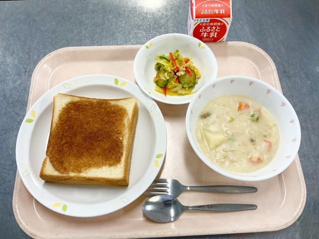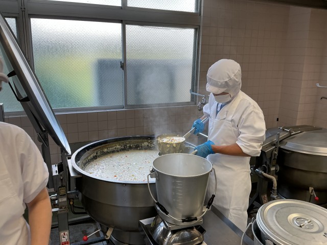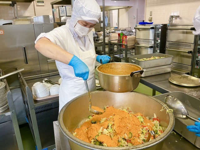 国の第四次食育推進計画において「持続可能な食を支える食育と推進」が重点課題となっているため、給食でも有機農産物を活用した給食提供を行っています。今日は有機栽培で育ったにんじんを使ってドレッシングを作りました。オレンジ色がきれいなドレッシングができました。