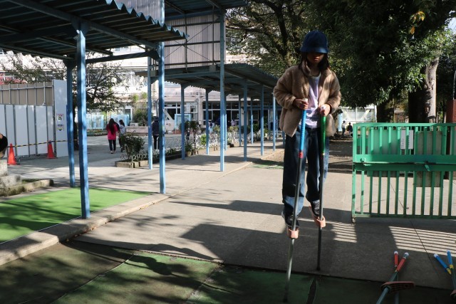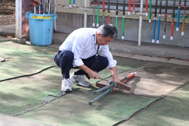 竹馬の高さを揃えたり、本当に安全か実際にのって確かめたりしているのです。子どもたちの安全なくして教育なし・・・です。