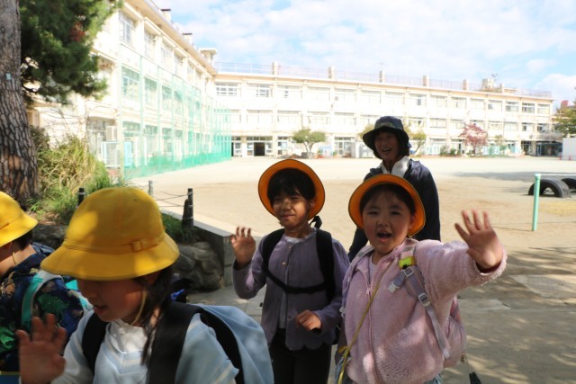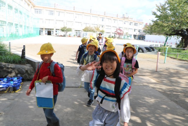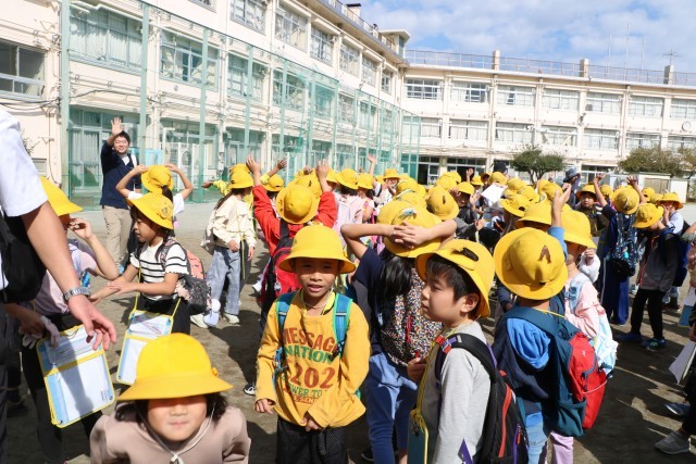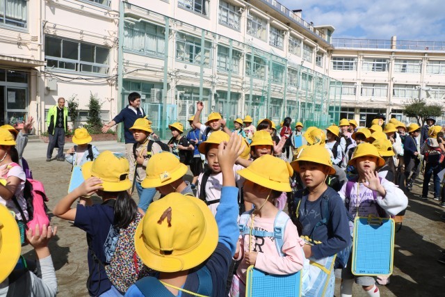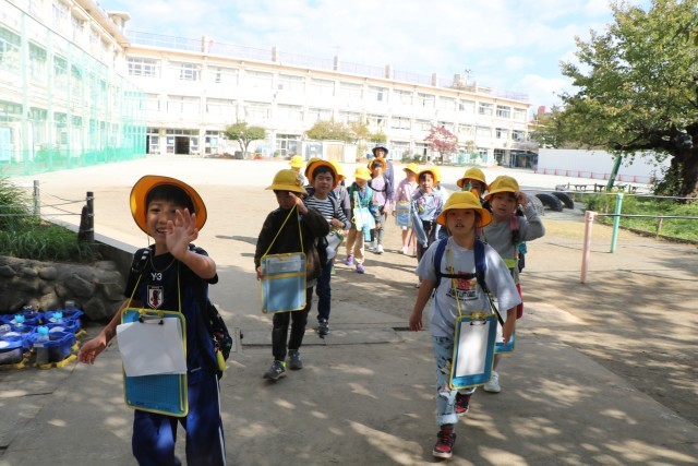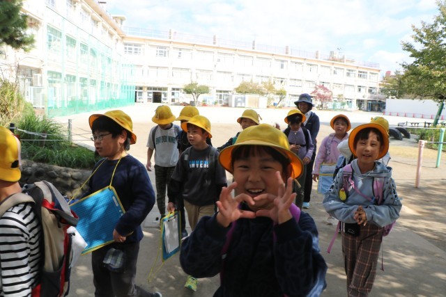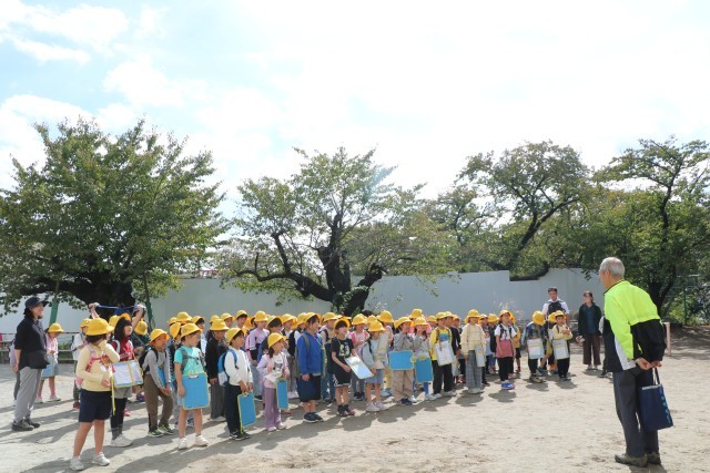 2年生が「まちたんけん」に出発しました。喜多見の畑に行き、どんな野菜を育てているのかお話を聞き、緑コースを歩いて妙法寺に行きます。
