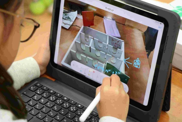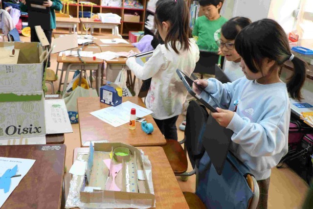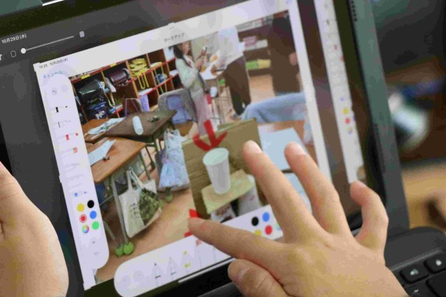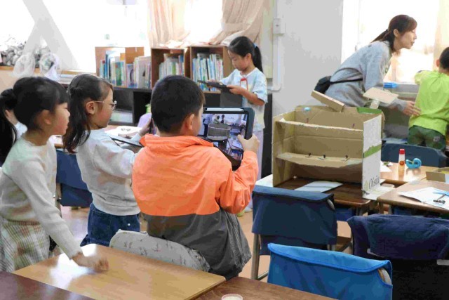 最後に、「いいね」と思った友達のおもちゃを写真で撮りました。ここがいいねと思った部分に矢印(→)を描いて、花丸をつけてあげて、先生に提出をしました。自分の作ったおもちゃに花丸がついたら嬉しいですね。