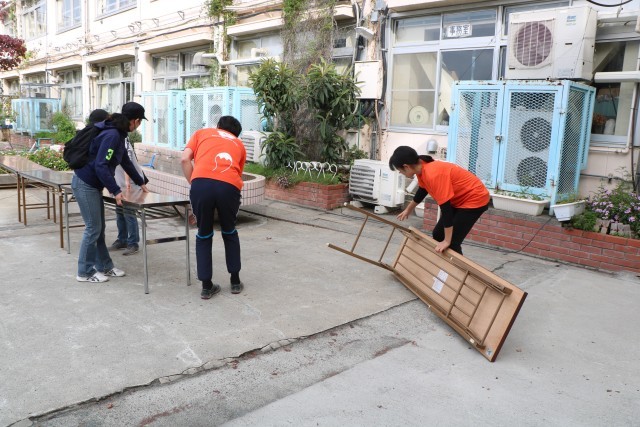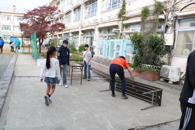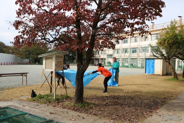 遊び場開放委員会主催「ミニ運動会」が今年も開催されました。準備のために朝早くからたくさんの方々が集まっています。おやじーずの皆さん、日大商学部ボランティアサークルの学生さんたち、ありがとうございます。