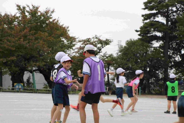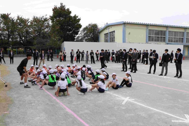 今日は3年生1クラスが、世田谷区の体育部の研究授業を行いました。世田谷区の先生方、大学の先生と学生さん、総勢150名以上をお迎えしての授業となりました。子どもたちも大人の多さにびっくりですが、準備運動などをしているうちにそんなことも忘れ、夢中になって担任の先生の声のもと、体を動かしていました。
