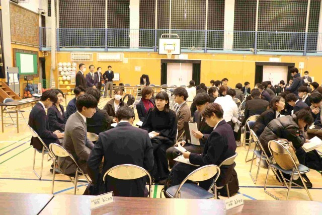 授業の後は体育館で協議会を行いました。グループで今日の授業について話し合ったり、体育部の先生方からの授業提案があったり、大学の先生からの講評があったりして充実した時間となりました。