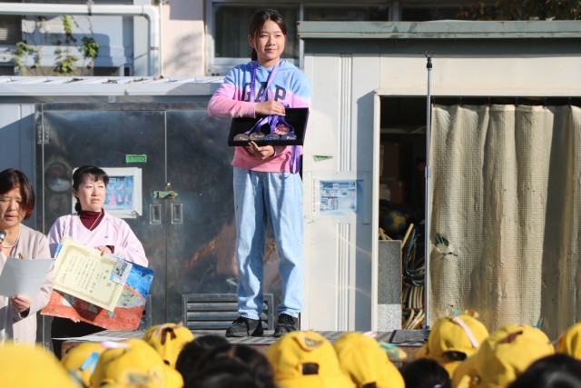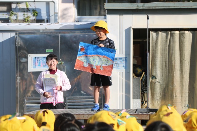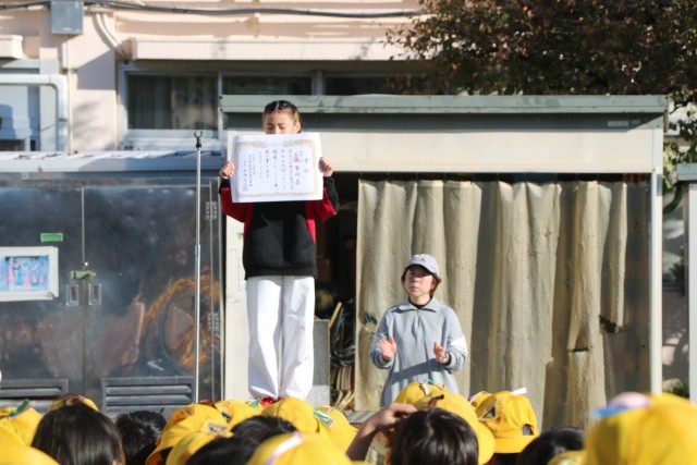 そして、学校の外で活躍した砧っ子を紹介しました。硬筆書道、ピアノ、ソフトテニス、剣道、絵画、水泳などたくさんの嬉しい報告がありました。
