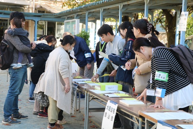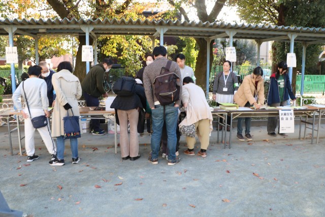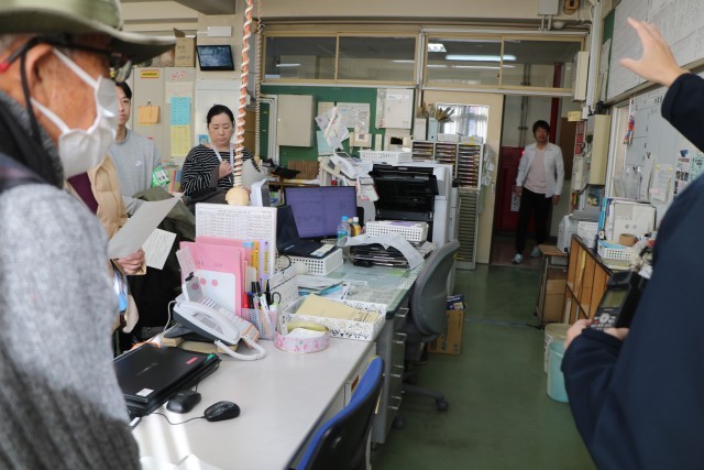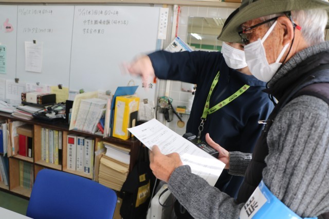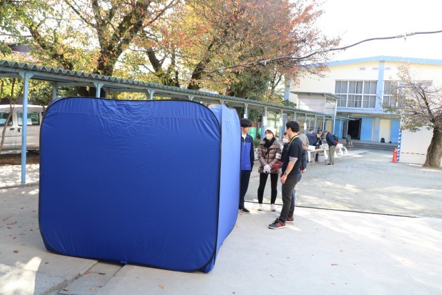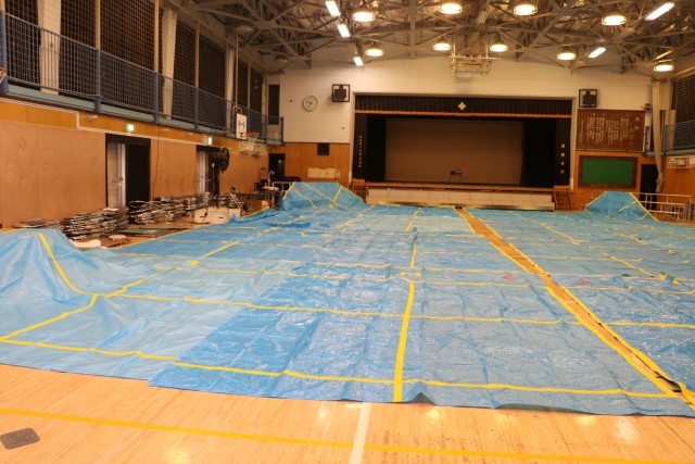 体育館にはブルーシートが敷かれ、一世帯分のスペースを目で確認することができます。