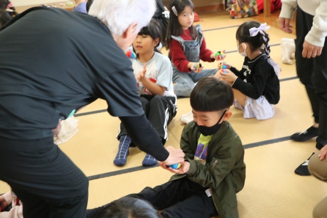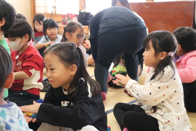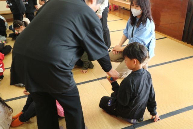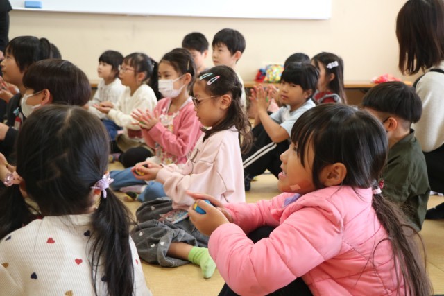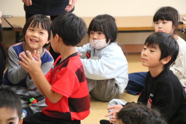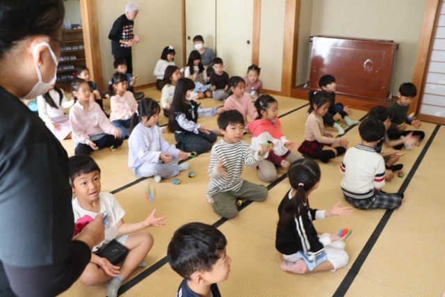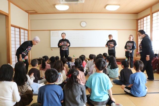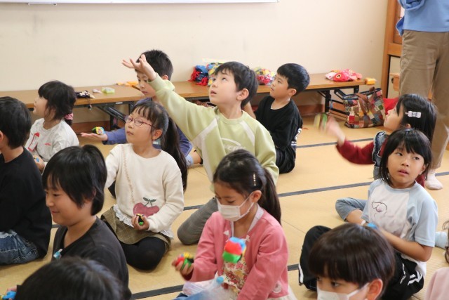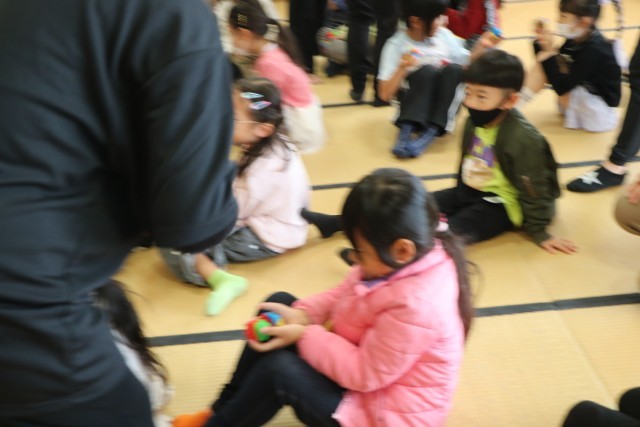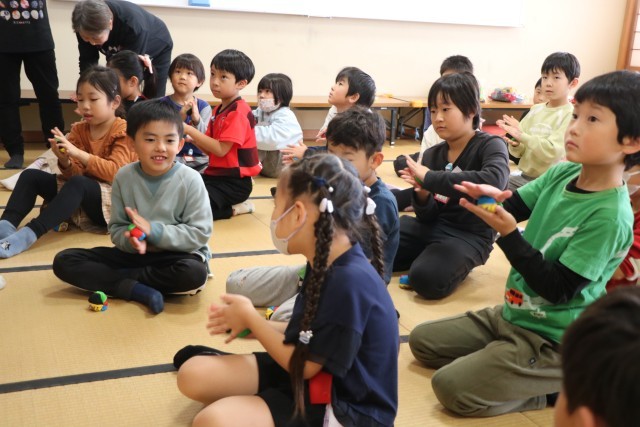 今日は、東京お手玉の会の皆さんをゲストティーチャーにお迎えして、生活科・お手玉遊びの学習をしました。一人二つのお手玉を受け取り嬉しそうな1年生です。