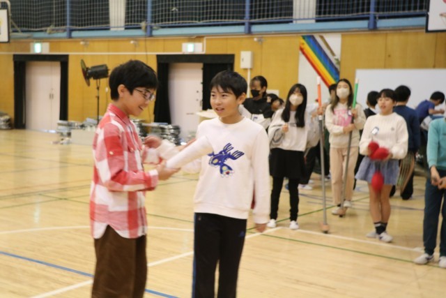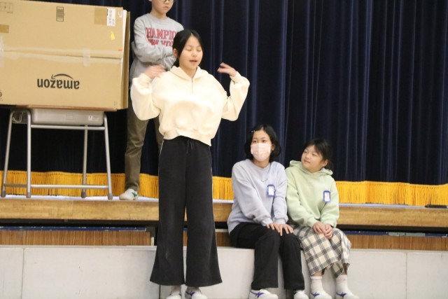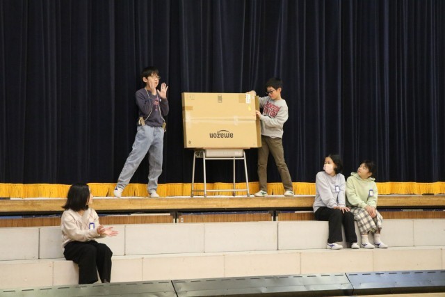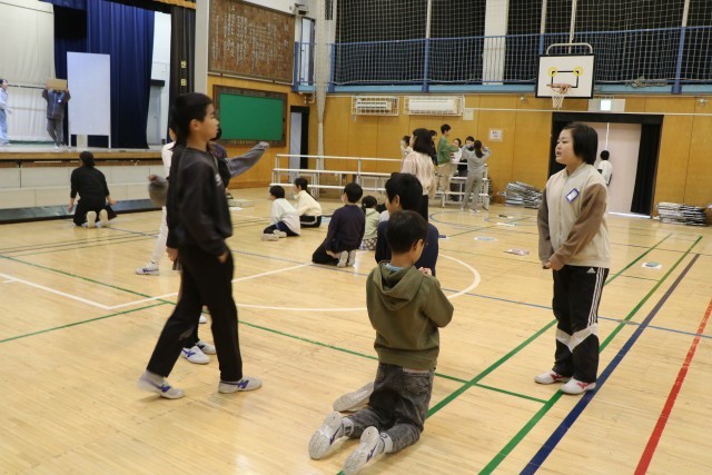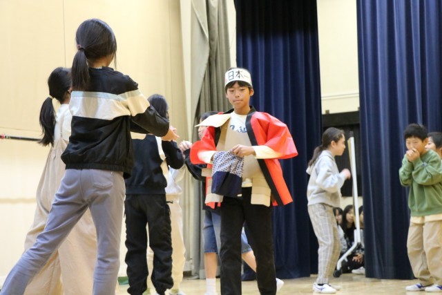 写真は5年生の練習の様子です。場面ごとにけいこした後、初めて通しで舞台けいこをしました。さすが5年生です。セリフを完璧に覚えているし、どこでだれが舞台に上がる、袖で待機する、ひな壇に戻る・・・などはしっかり頭に入っています。