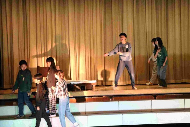 舞台以外でも照明などの役割を担っているところや、自分が出ていない場面の練習でもしっかり見てよかった点を言えるところ、常に学年全員が劇に参加している意識が伝わってきます。