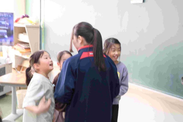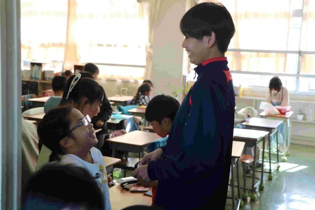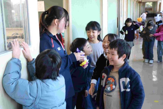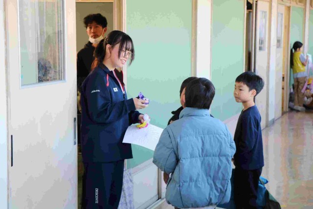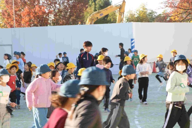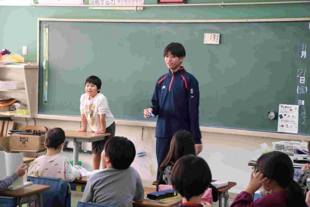 その他にも、授業参観、主事さんの手伝いで落ち葉掃き、学芸会の練習手伝い、中休みの鯉のエサやりの5粒をあげる係、など様々な種類の体験をしてもらいました。子どもたちともたくさん関わってくれました。