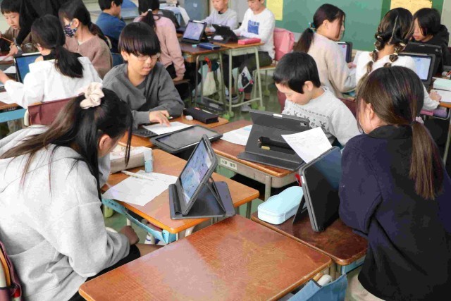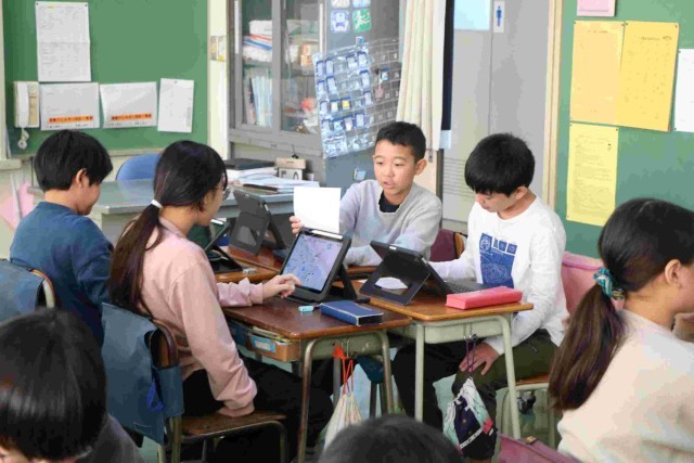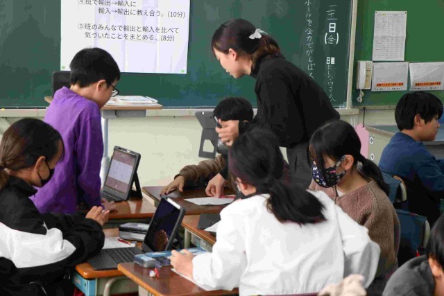 「日本はどこへ何を輸出しているのか、どこから何を輸入してるのか」を調べました。グループ内で輸出と輸入の担当に分かれて調べ、調べたことをつ伝え合い、気付いたことを話し合いました。