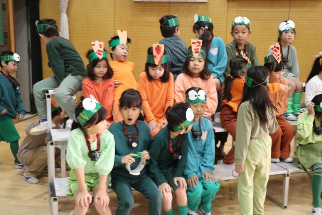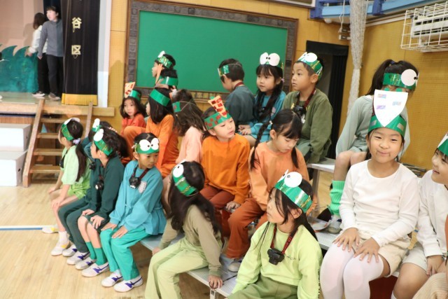 1年生の様子です。今日と明日、カメラマンさんが入ってくださり劇中のスナップ写真や劇後の学年写真を撮影しています。販売する予定ですのでお楽しみになさっていてください。