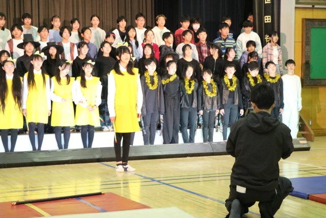 6年生は放送、効果音、照明も子どもたちでやります。終わりの言葉も28日バージョンと29日バージョンどちらの練習もできました。代表で言葉を言う子だけでなく後ろに立っている6年生全員が代表のつもりで支えてくれています。