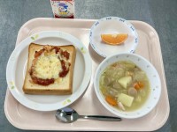 コロッケサンドにして食べやすいように、パンには切れ目が入っています。学芸会応援メニューとして心を込めてコロッケを手作りしました。