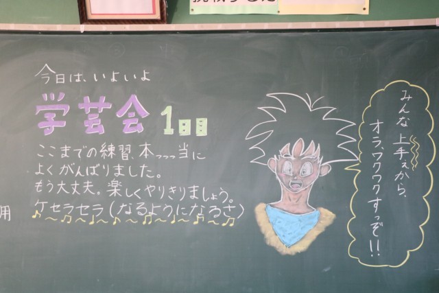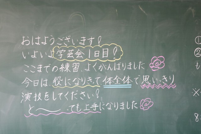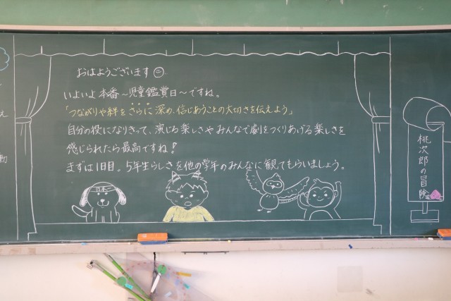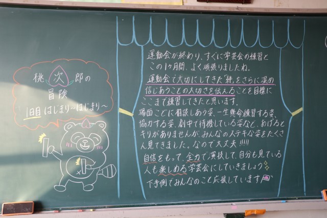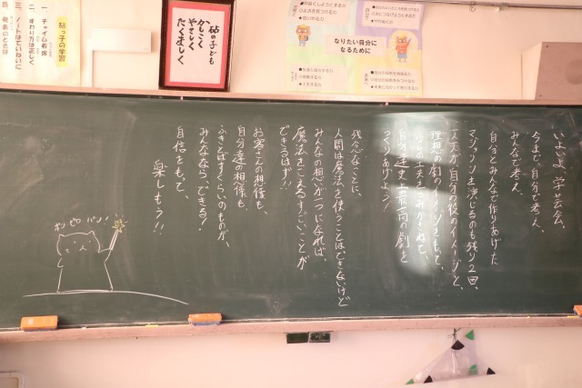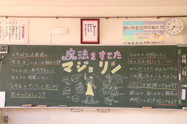 教室の黒板にあった担任の先生たちからのメッセージをほんの一部ご紹介します。子どもはもちろん、先生たちも一緒に創り上げてきた熱い思いが感じられるメッセージばかりで、これだけでも胸が熱くなってしまいます。