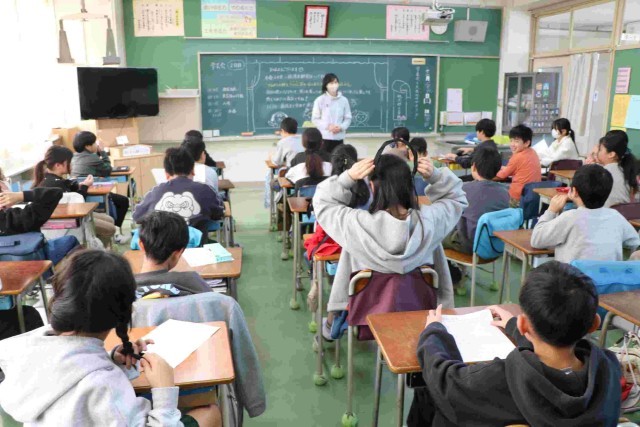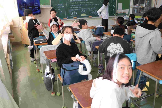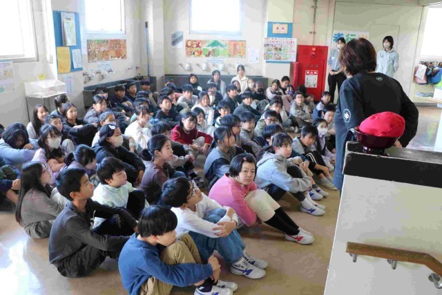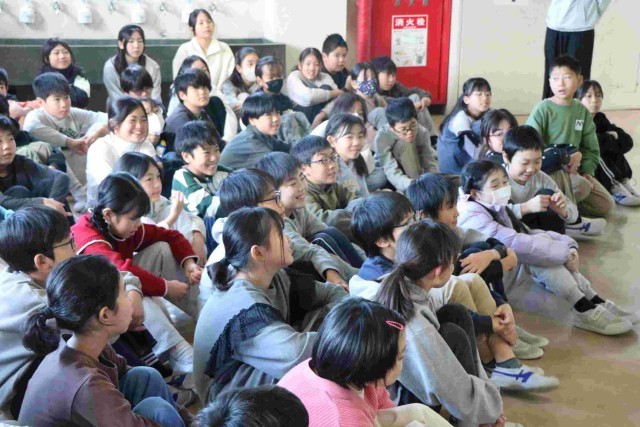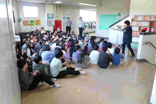 まもなく出番の教室は…思ったよりリラックスムードでした。しかしさすがは高学年、体育館に入る直前の様子はすっかり切り替わっていて真剣でした。