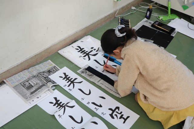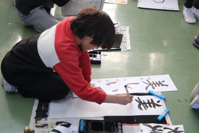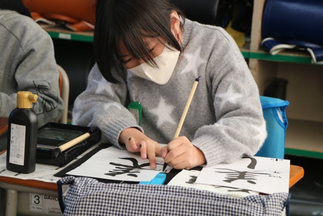 4年生の様子です。初めて書初め練習に取り組んだそうです。