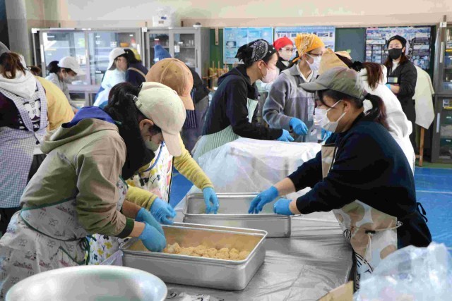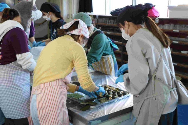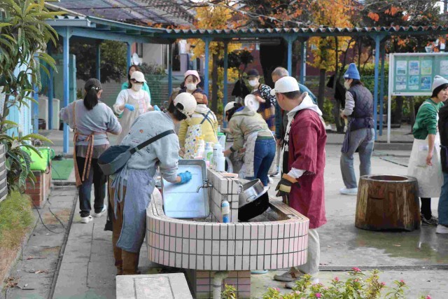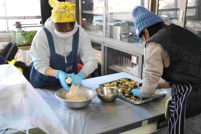もちを分けて丸め味付けしたら運んでくれます。そして、最後までたくさんの洗い物をしてくれて、もちつき大会は無事終了です。