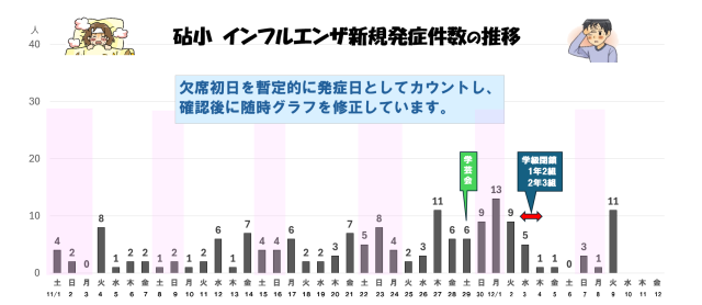 咳・喉痛(9),熱(8),頭痛(4),腹痛(2),吐気/嘔吐(2)