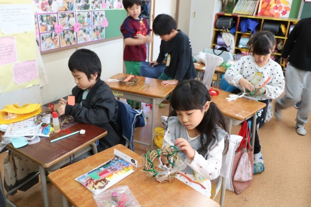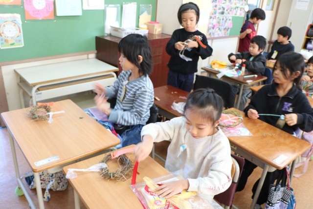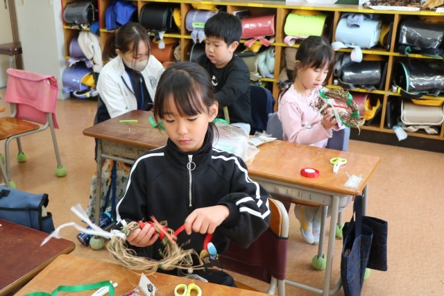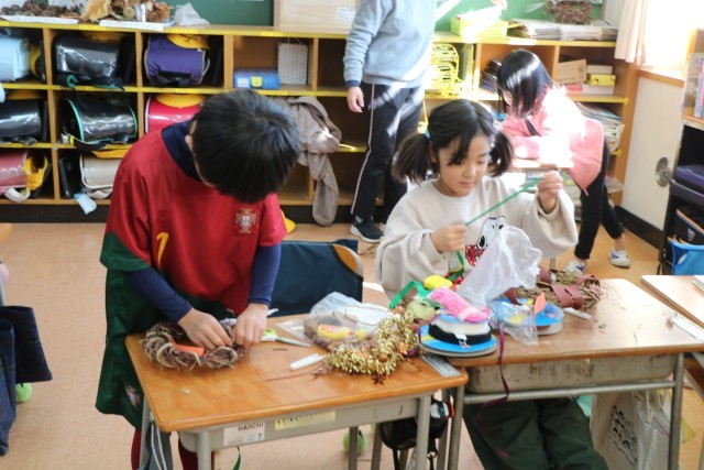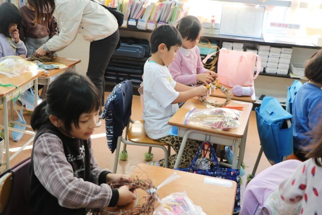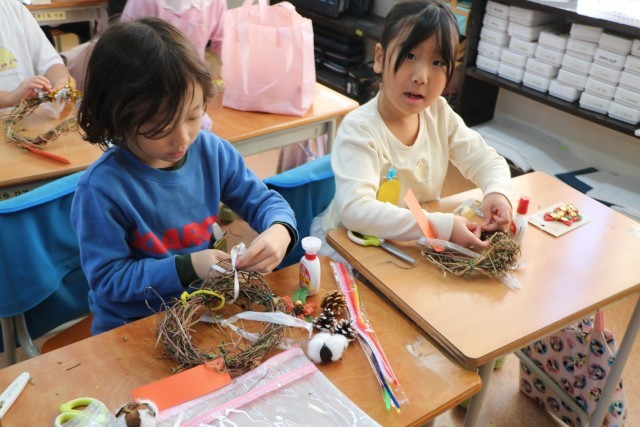 1年生生活科の様子です。朝顔のツルで作っているのは・・・!リースです!!